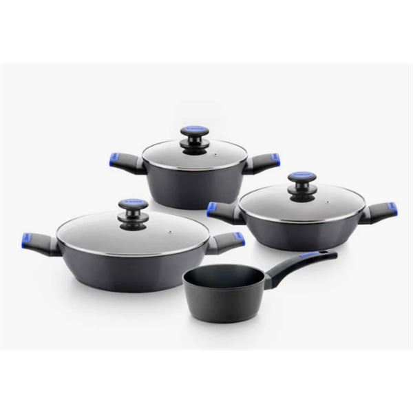 • Contiene: cacerola alta de 20 cm con tapa de cristal, cacerola baja de 24 cm con tapa de cristal, cacerola baja de 28 cm con tapa de cristal y cazo de 16 cm.